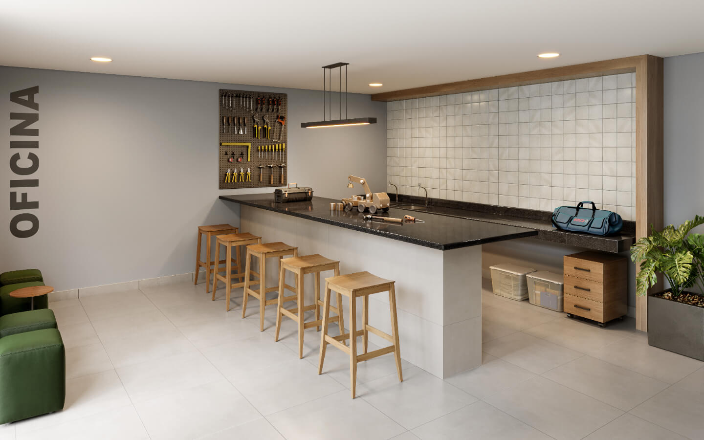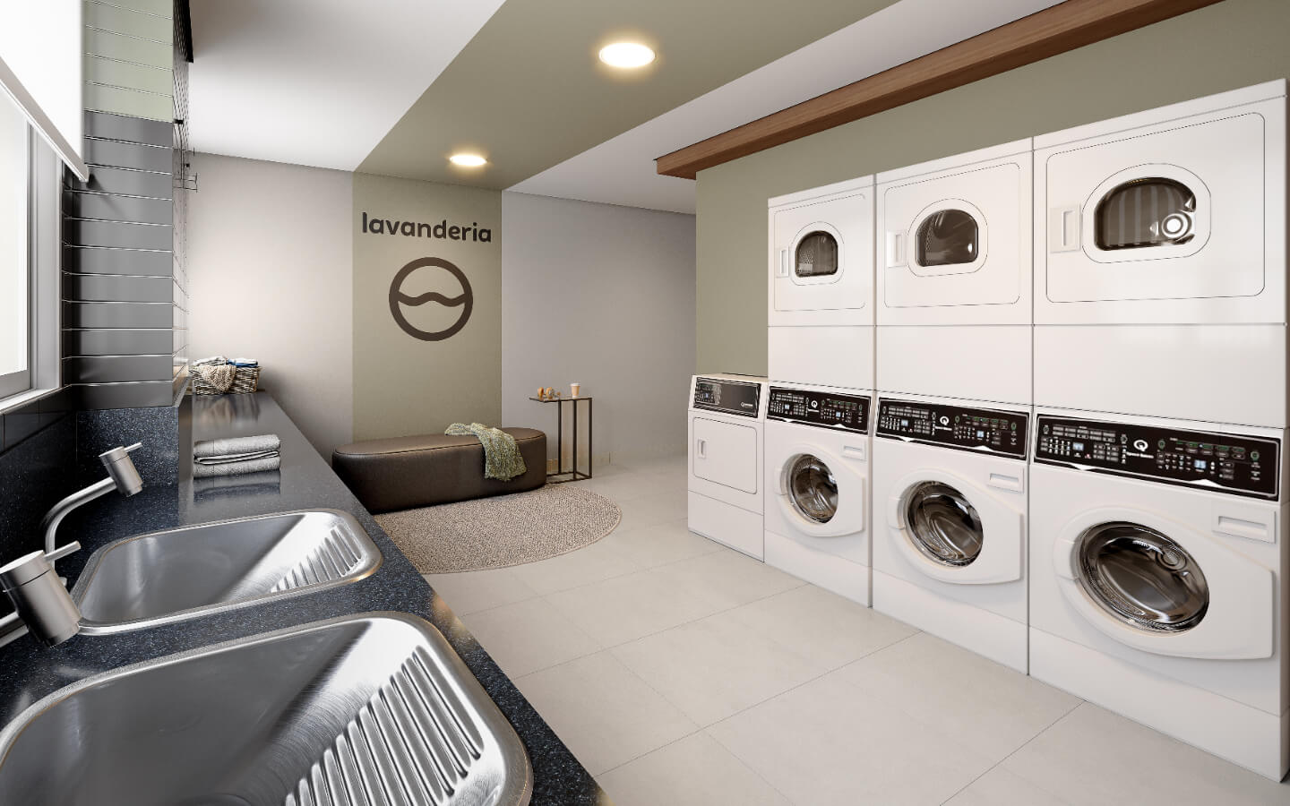 Coworking, lavanderia compartilhada, bicicletário e áreas verdes para maior praticidade e conforto no dia a dia.