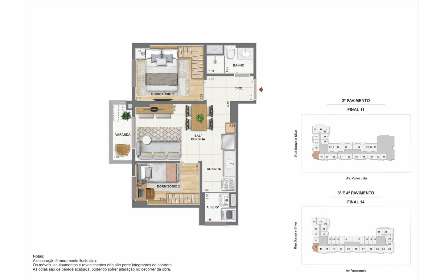 Apartamentos modernos de 1, 2 e 3 quartos, além de studios, com acabamentos de alta qualidade e espaços planejados para seu bem-estar.